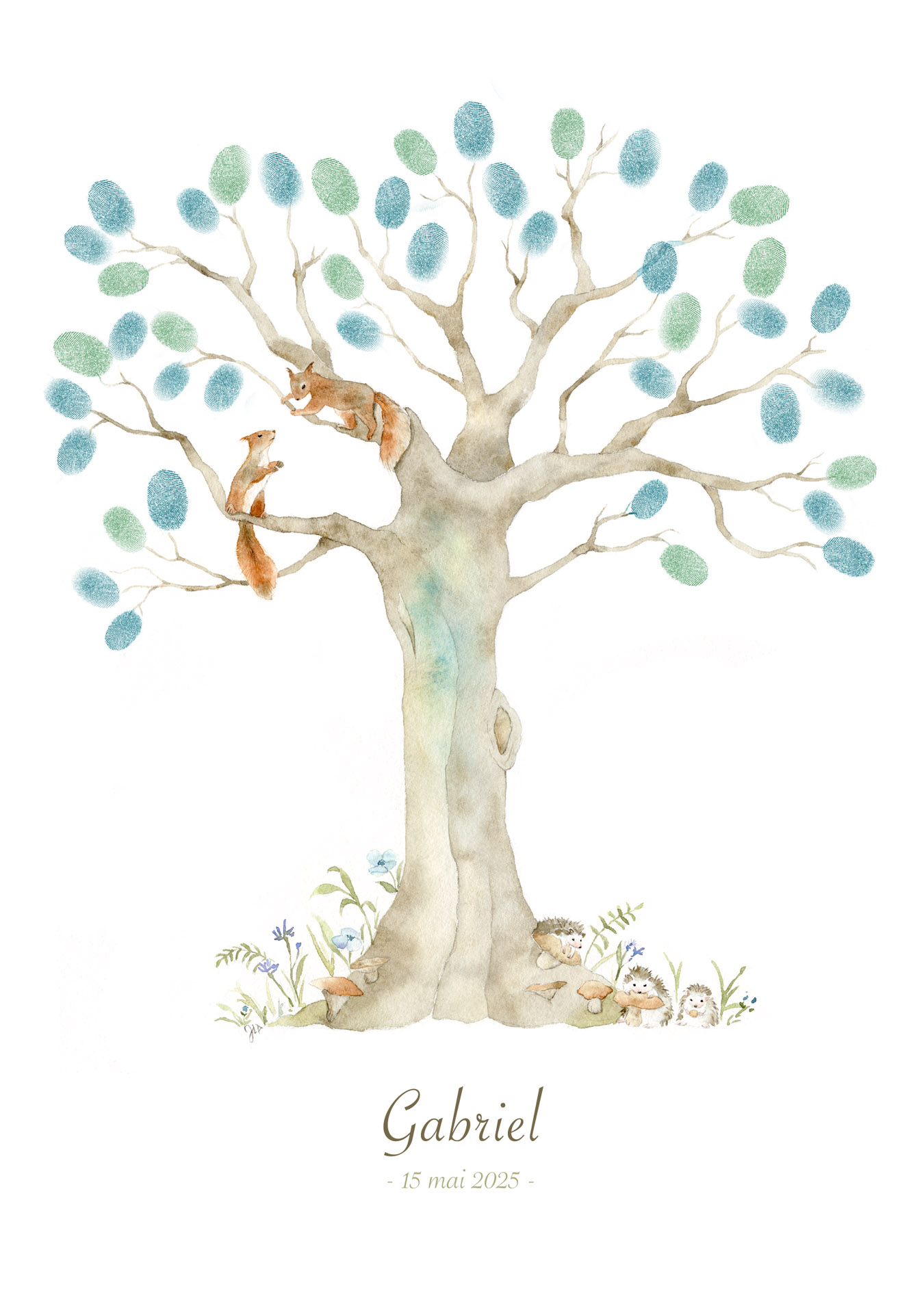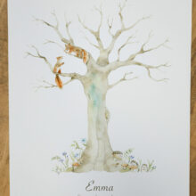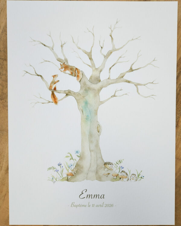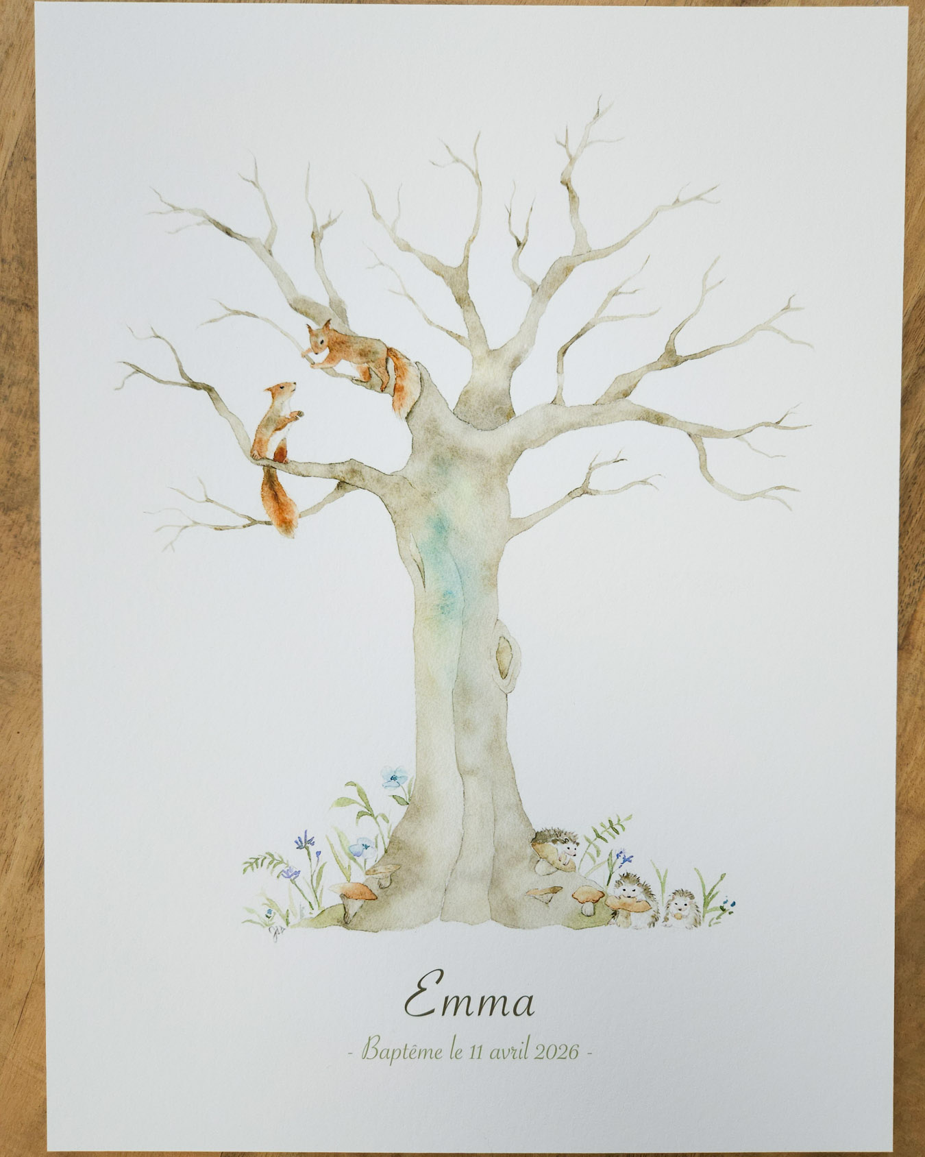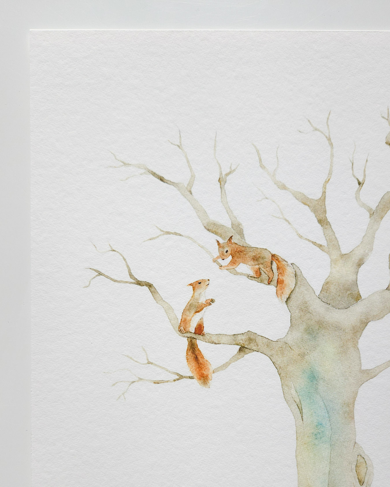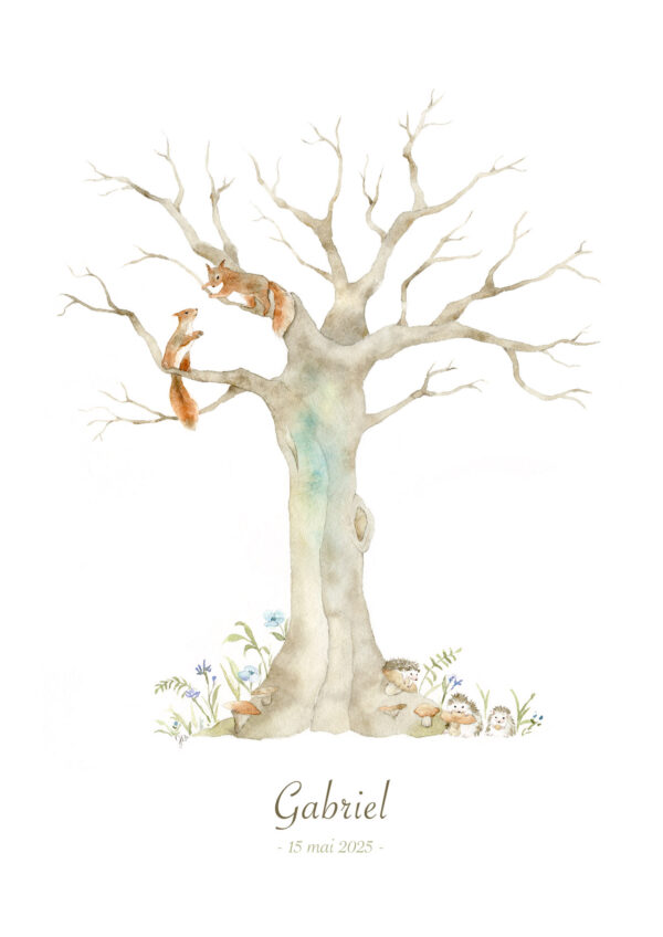 L’Arbre à Empreintes Écureuil est réalisé à partir d’une peinture à la main à l ‘aquarelle.